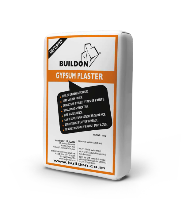 BUILDON Gypsum Plaster is produced from the light powder-density rock sourced from the purest mines. The advantage of our Gypsum is that it is the highest grade, pure white in colour, and 40% harder than any other Gypsum Plaster available in the Indian market. This Gypsum plaster can be applied easily and directly on all surfaces without the need for sand/cement/ plaster on the walls. The coverage in a 25Kg bag is 20 Sq. Ft. with a thickness of 12mm. The Fineness of 200 Mesh and purity over 85% ensure the best atomic bond and an absolute mirror finish.